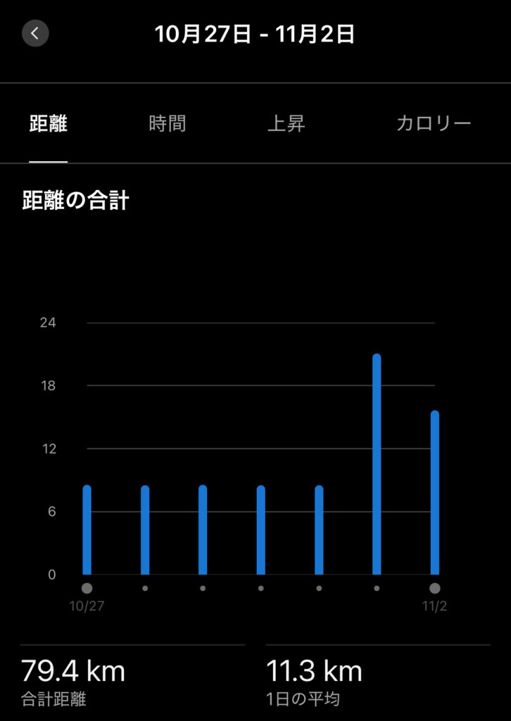 1週間で79.4kmを走破。