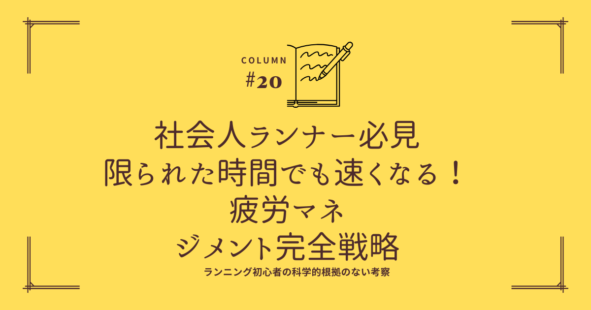 社会人ランナーの悩みはいつも同じだ。仕事が忙しく、家事や付き合いの予定もある。睡眠時間は削れない。けれど、走りたい。速くなりたい。学生ランナーのように時間は無限ではない。限られた時間の中で、どれだけ効率的に走り、疲労をコントロールできるかが、成長のカギとなる。
