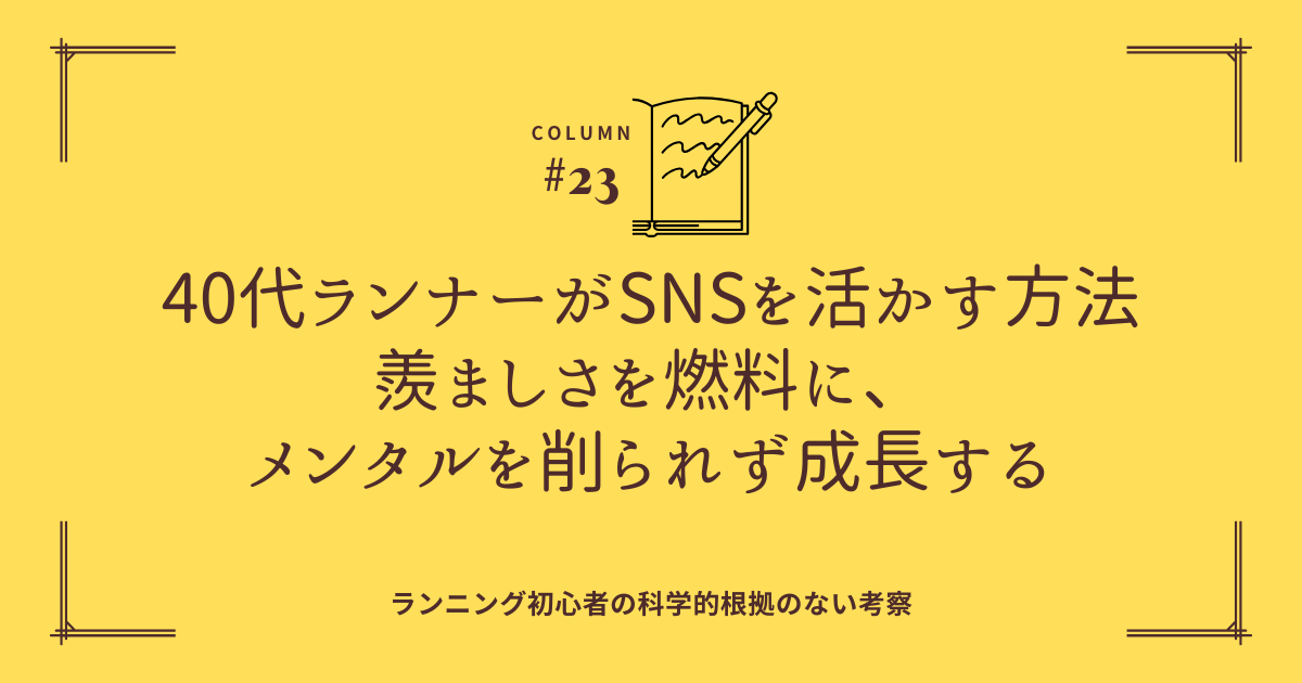40代ランナーにとって、SNSは「羨ましい」「化け物だらけ」と思える世界でありながら、自分の成長速度を加速させる近道にもなります。