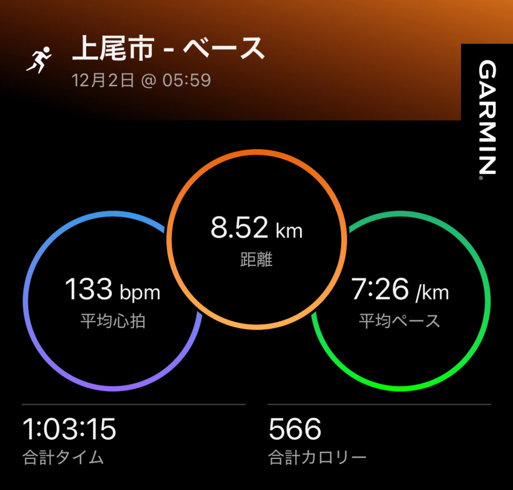 Day35|8.5kmベース走(7:26/km・133bpm)