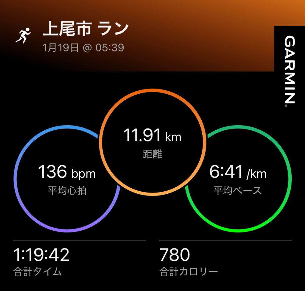 改めて数字を並べてみると、12km・約80〜90分のジョグというのは、世間一般で言えば明らかに初心者メニューではない。