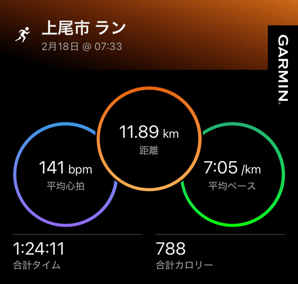 今日のランは改めて、自分にとっての90分ゆるジョグの意味を考える機会になった。距離自体は11.89kmで理論上の90分にはやや短いが、実質的にはペース7:05/km前後で心拍は140以下に抑えられ、ラストまで脚の余裕を残すことができた。心拍が安定しているため、走りながら回復する能力や筋持久力の向上を意識したトレーニングとして成立している感覚がある。
