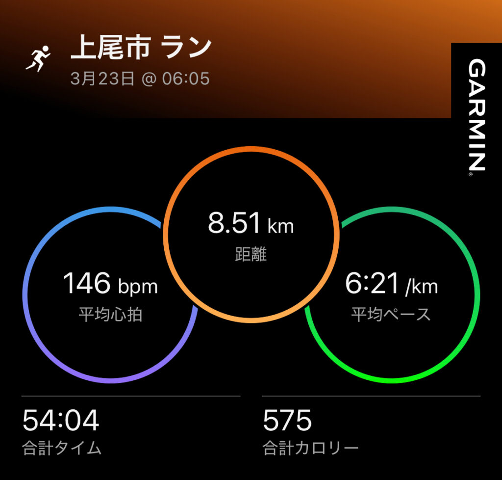 今日の6:21/kmはフル寄りのジョグ。