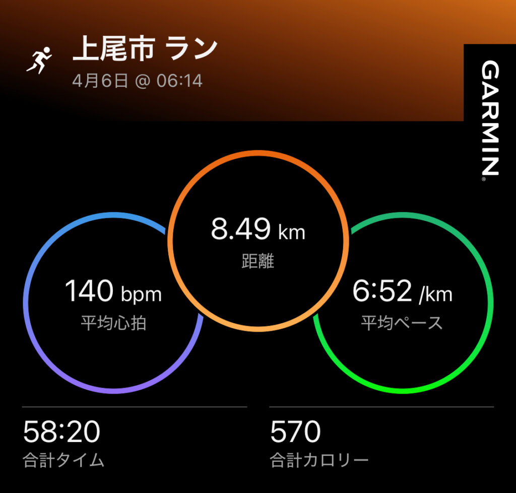 8.49kmという中途半端な距離も悪くない。60分という時間基準。ペースは結果論。